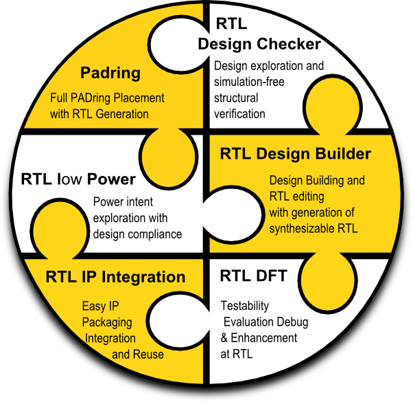 STAR is a RTL design solution which helps in design exploration, editing and structure verification. Based on set of EDA tools that work seamlessly together, build a complete solution to shorten the path towards a ready for synthesis RTL code. Through its unique “Build&Signoff” design capabilities, STAR offers to designers, in one script, the ability to extract design information, edit and generate the synthesizable RTL code and finally signoff the resulting RTL code.